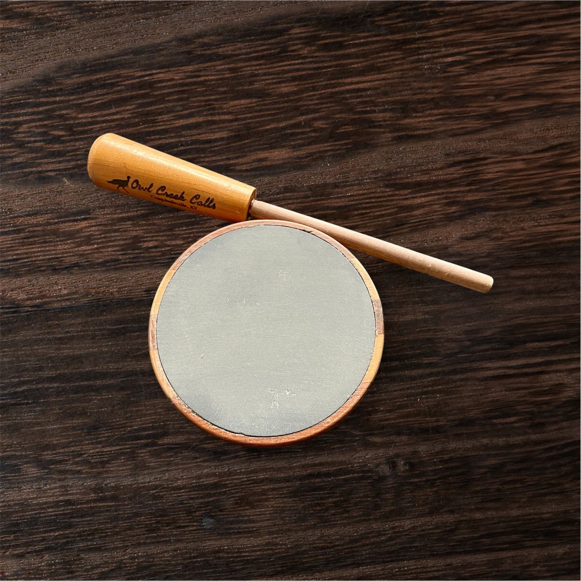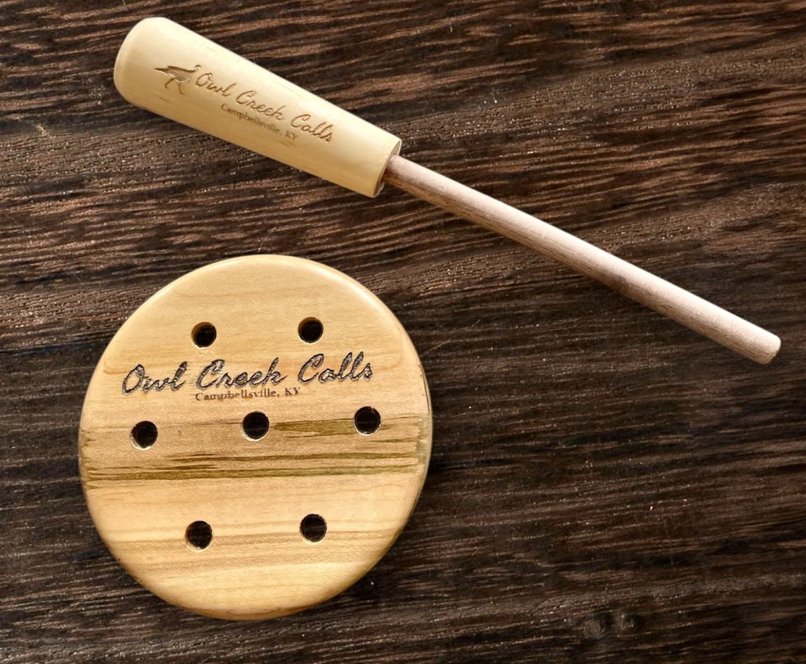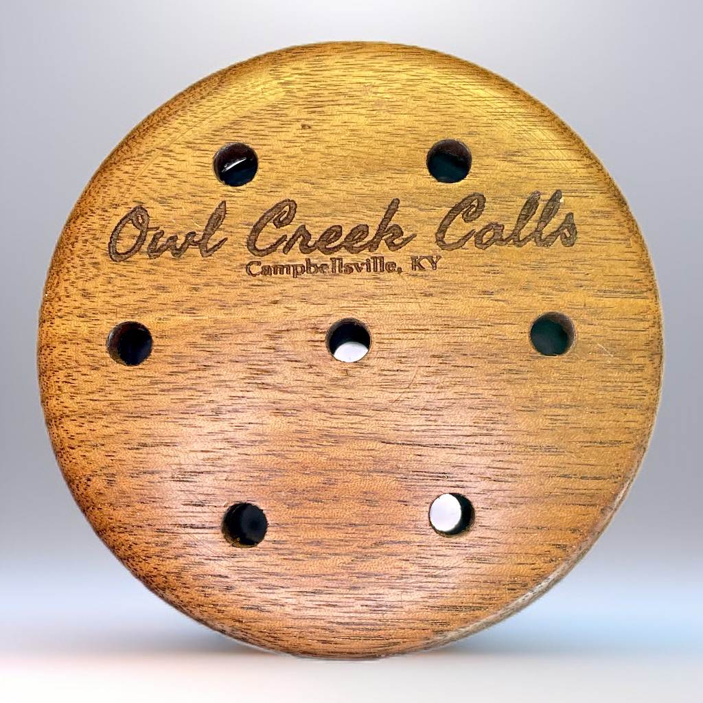 New to our lineup is our 3.5” aluminum over glass in a cherry pot. It features a 3.5” green anodized aluminum that has been blasted in order to make it more user friendly. It comes with a walnut striker with cherry striker head; this combination produces a high pitch than a standard slate call with makes it perfect for longer range calling or when you are hunting on a windy day!